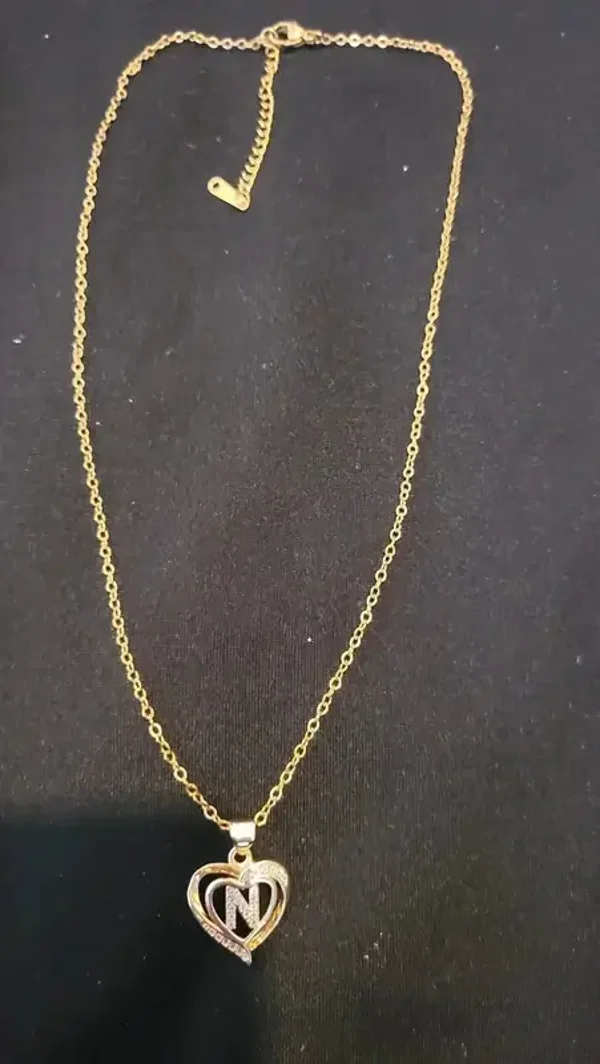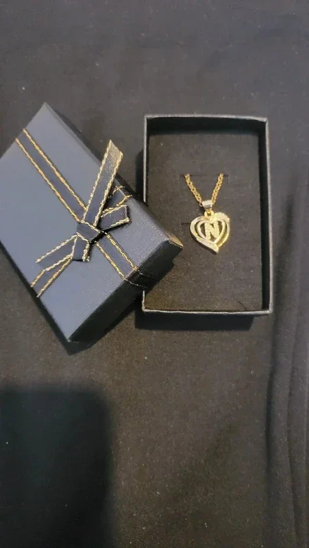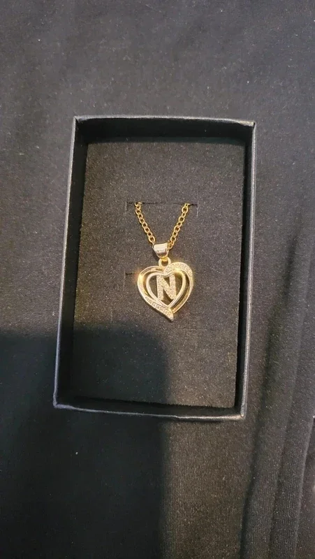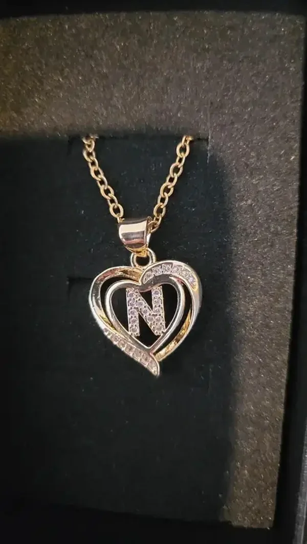 joli collier doré avec pendentif double cœur et lettre "N". Matière : Acier inoxydable (résiste à l'eau, ne noircit pas). Design : Orné de strass brillants style zirconium.Packaging : Vendu avec sa boîte cadeau (prêt à offrir).